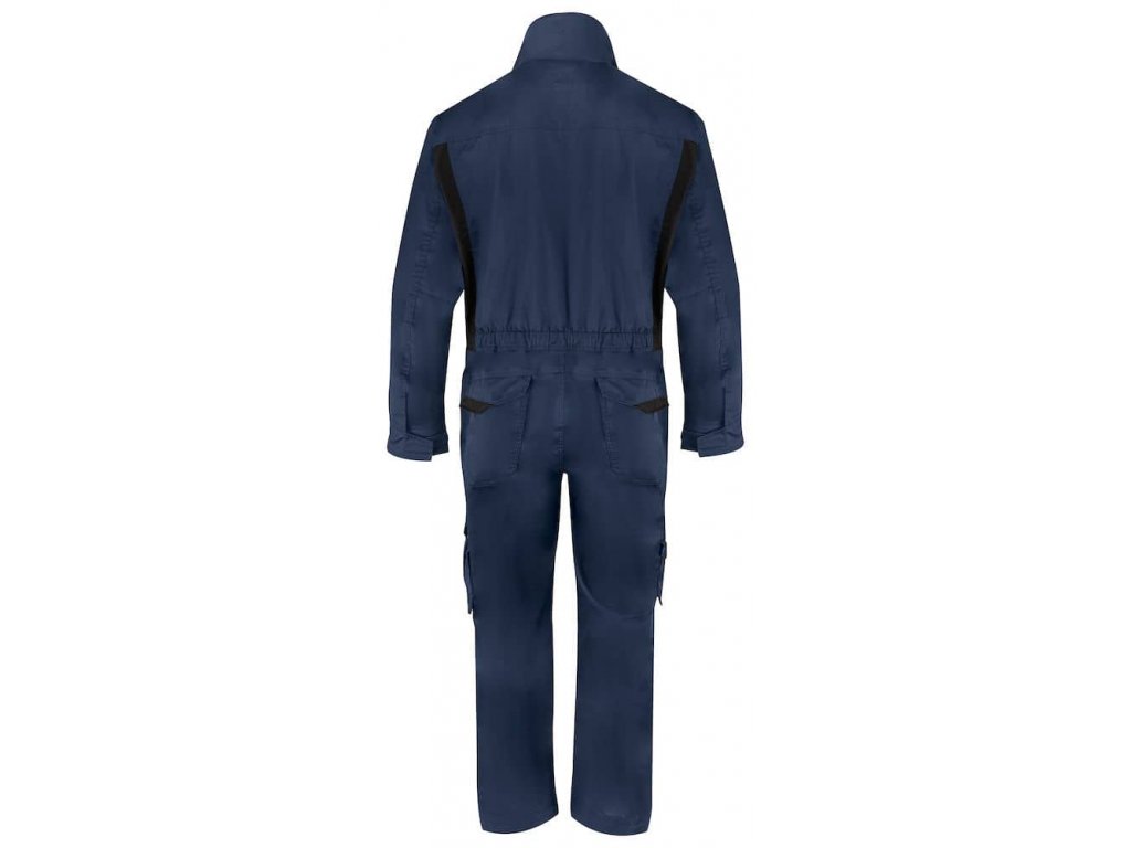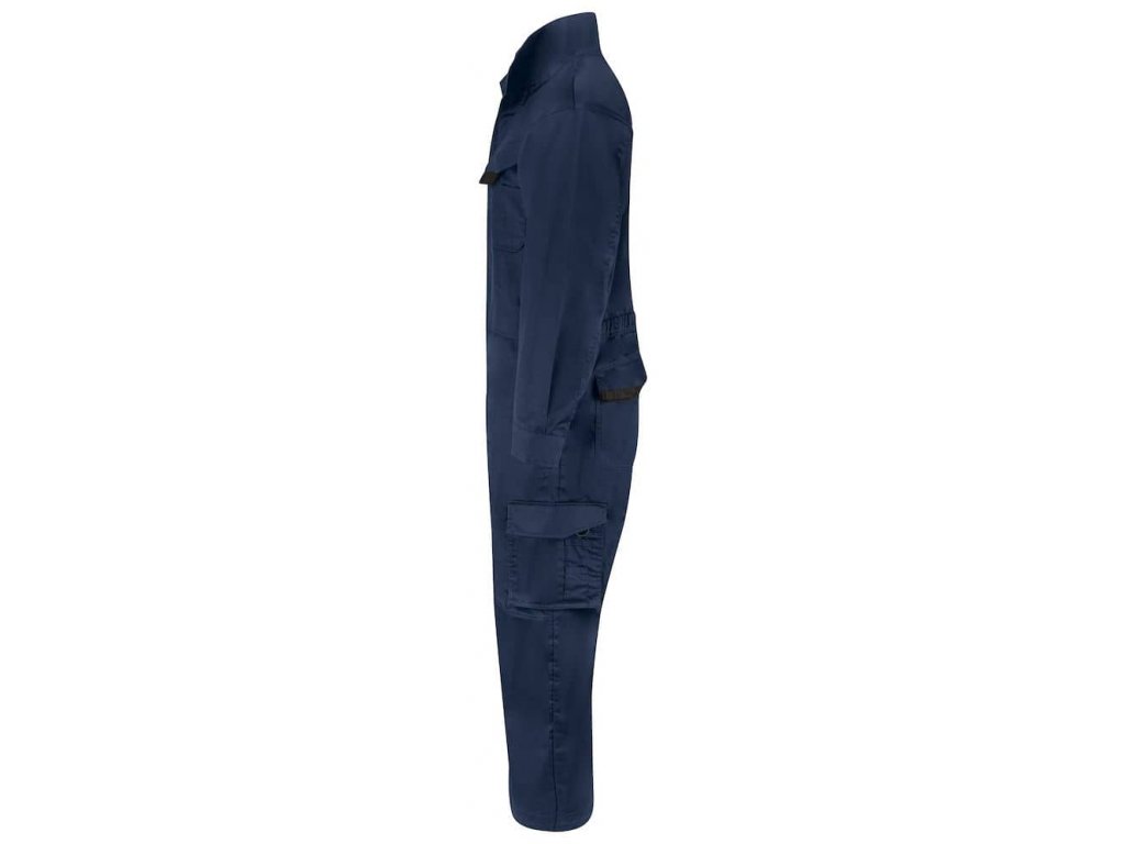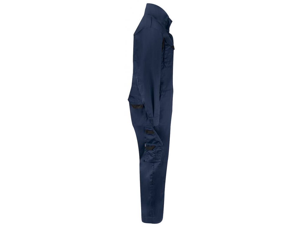 Overal s dvoucestným zipem krytý klopou. Náprsní kapsy na suchý zip na obou stranách. Hluboké postranní kapsy po obou stranách a také otvory pro dosažení kapes v kalhotách pod overalem. Po obou stranách náprsní kapsy na pera, papíry atd., levá kapsa má také držák na připnutí dokladů se zapínám na suchý zip. Kapsy na nohavicích: na levé straně jedna prostorná kapsa s klopou a zapínáním na suchý zip a jedna vnitřní kapsa na telefon. Na pravé straně kapsy na pera, papír a skládací metr. Zadní kapsy s klopou a zapínáním na suchý zip. Nastavitelný pas s vnitřní šňůrkou, manžety jsou nastavitelné na suchý zip. Vnitřní kapsy na chrániče kolen. Délku nohavic lze prodloužit o 5cm.