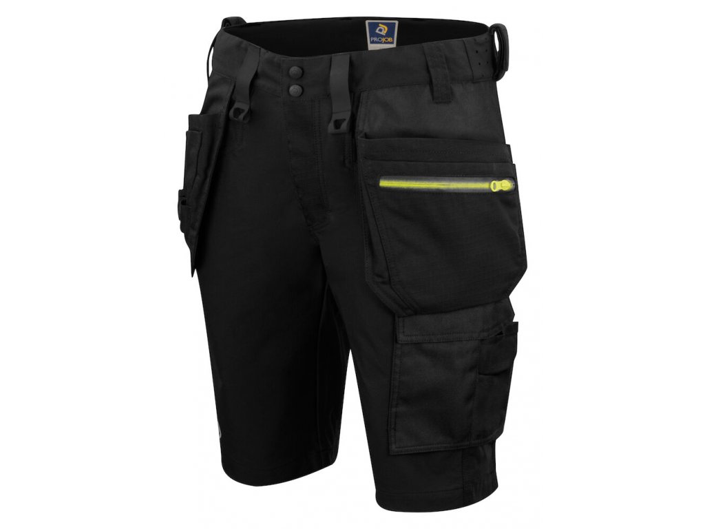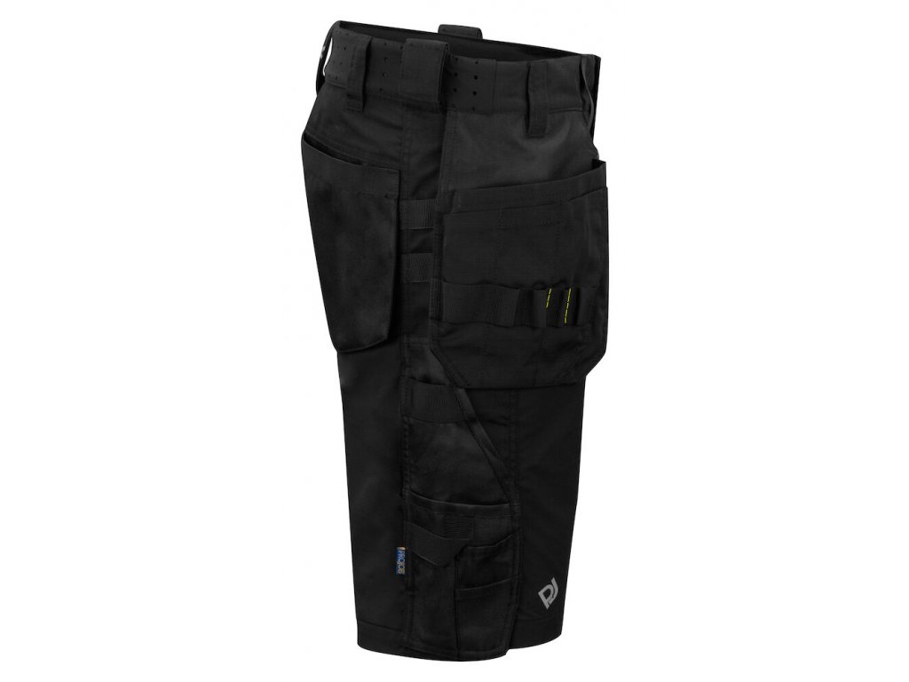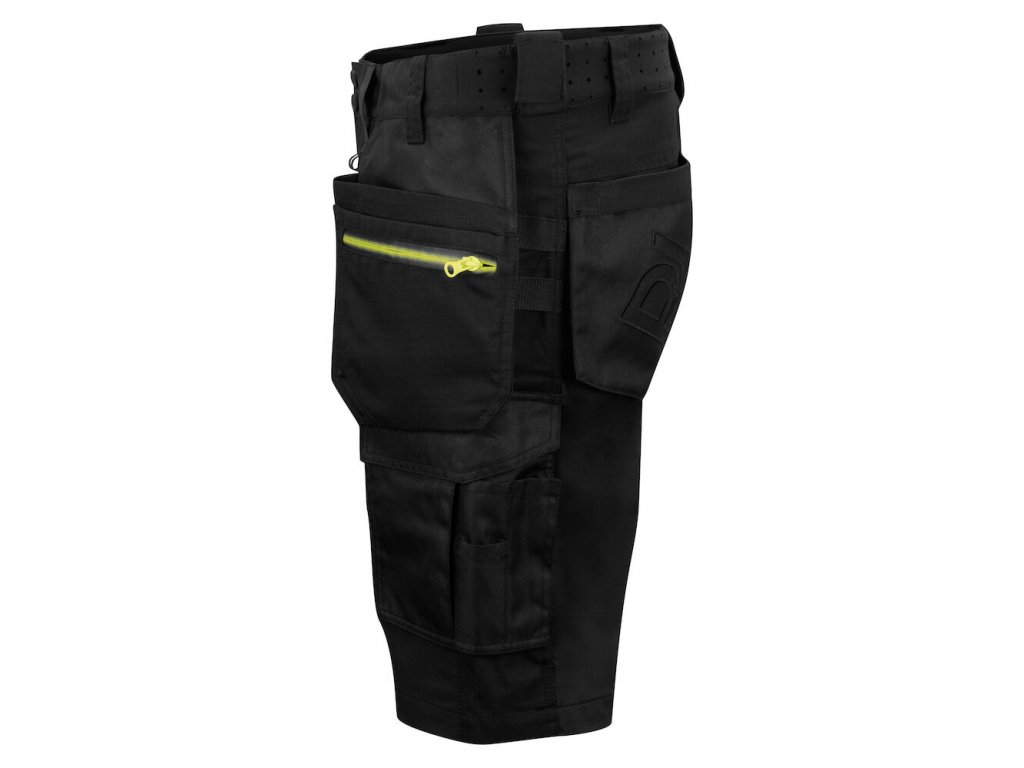 Pracovní kraťasy plně strečové pro maximální flexibilitu a komfort a pohodlí. Moderní střih. Čtyřcestný streč přes stehna a v sedu. Větrací otvory se zipy po obou stranách nohavic se síťovanou podšívkou, také umožňuje větrání. Kapsy na nohavicích se zipy na obou stranách s vnějšími kapsami na nářadí, obě s vnitřními kapsami na telefon a držákem pro připevnění průkazu totožnosti.. Na pravé straně kapsa na skládací metr a kapsa s knoflíkem na pracovní nůž. Dvě poutka na nářadí. Možnost připojit na obou stranách systém MOLLE.