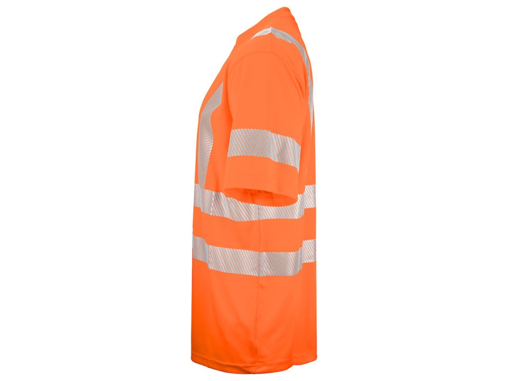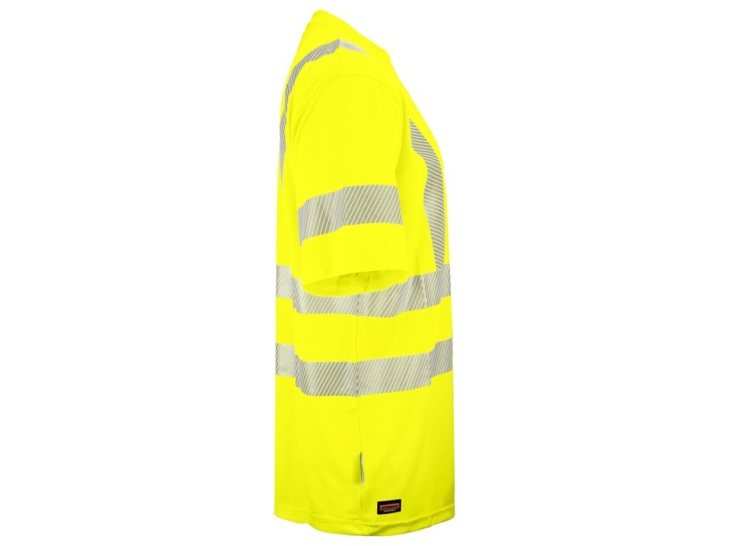 Tepelně lisované bezešvé reflexní proužky s mezerami na bočních švech pro větší flexibilitu a pohodlí. Reflexní proužky na ramenou pro optimální viditelnost. EN ISO 20471, tř.3 – Velikost L-4XL.