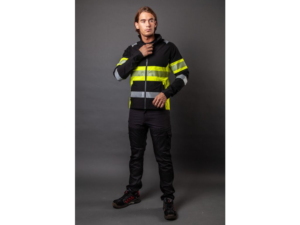 Větru a vodě odolná pracovní bunda z lehkého strečového materiálu. Podlepené švy a voděodolný zip po celé přední délce s vnitřní légou proti větru a krytkou k ochraně proti poškrábání brady. Boční kapsy na zip. Páskové odrazky pro větší flexibilitu. Na koncích rukávů otvor na palec.