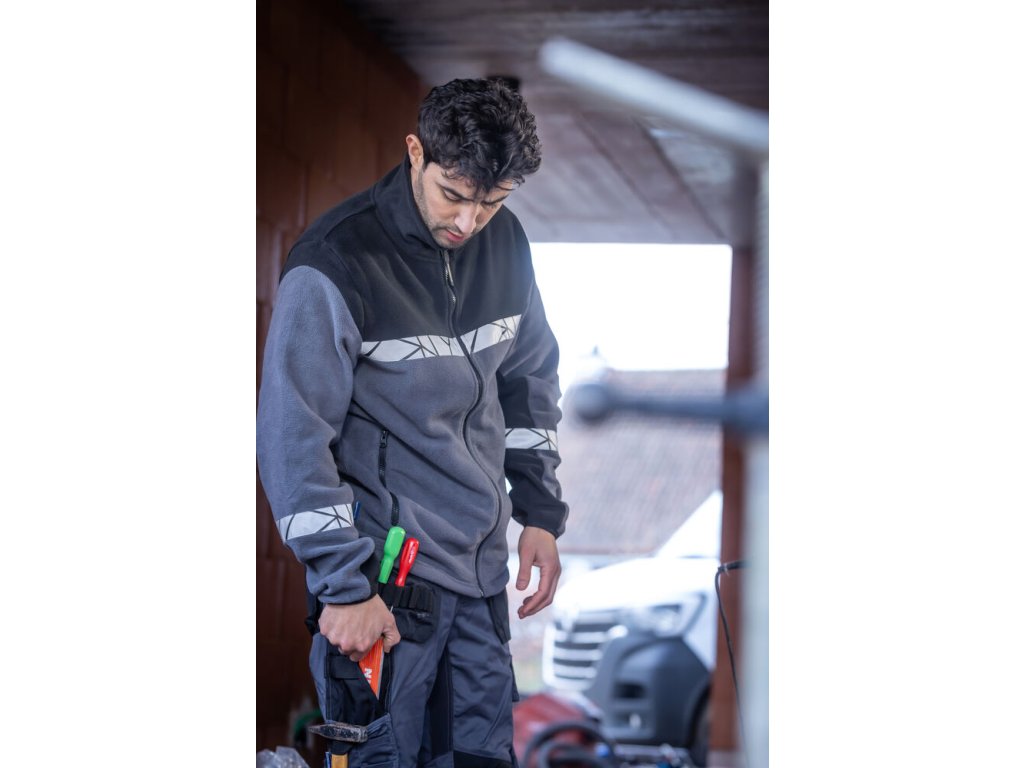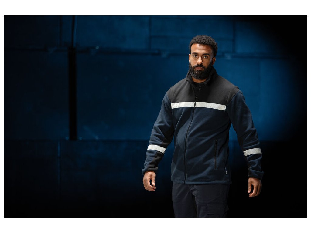 Flísová mikina s celopropínacím předním zipem, nahoře krytá chráničem brady proti odření.