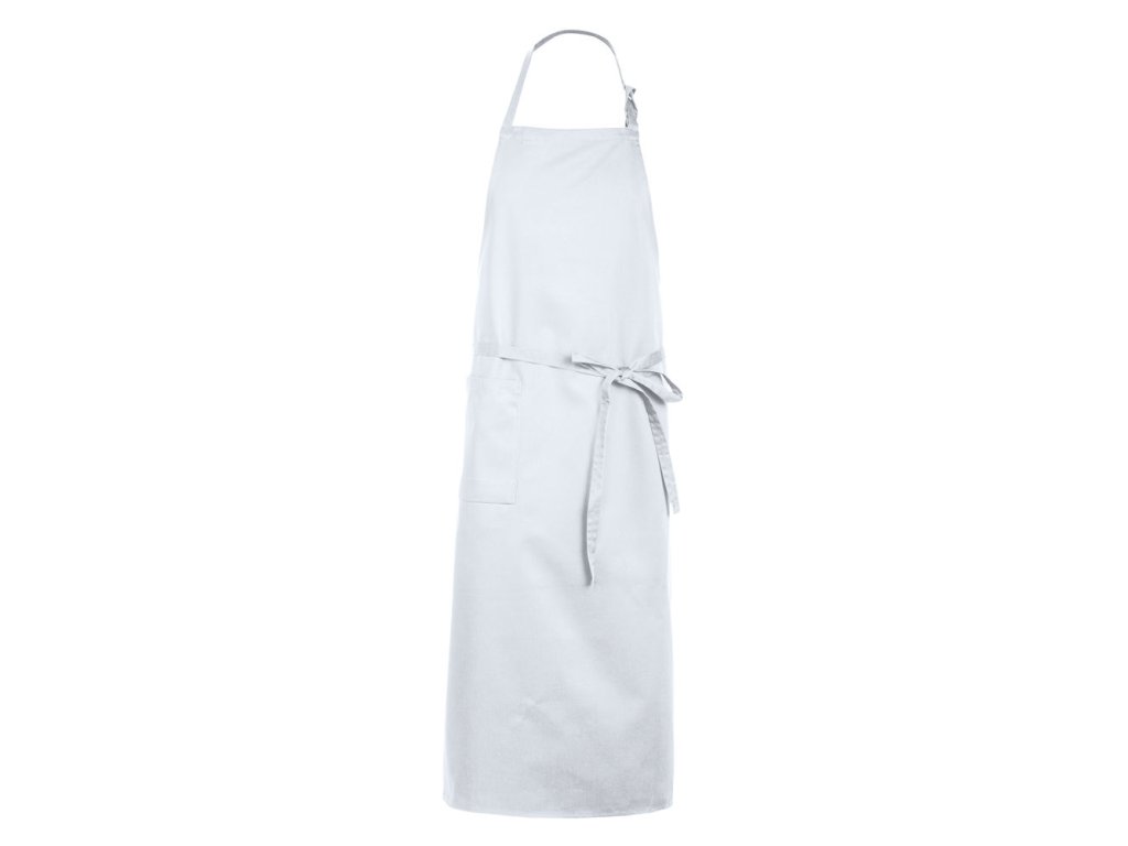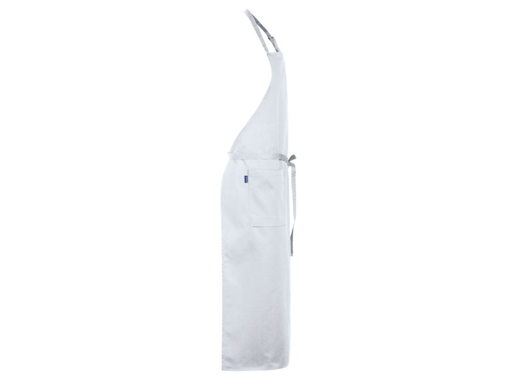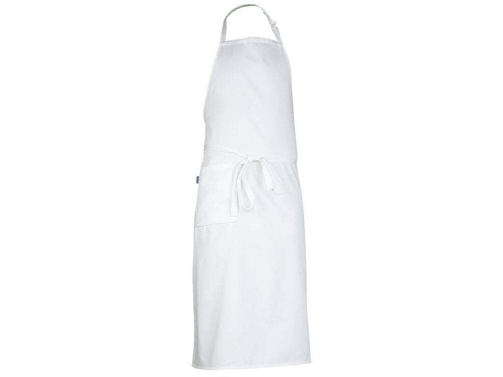 Zástěra s nastavitelným popruhem kolem krku. Kapsa na pravé straně. Velikost: šířka 70 cm, délka 110 cm