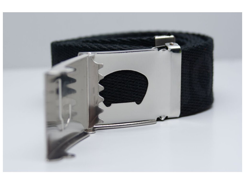 šířka 38 mm. Kovová přezka s logem 'J' a na zadní straně otvírák na láhve.